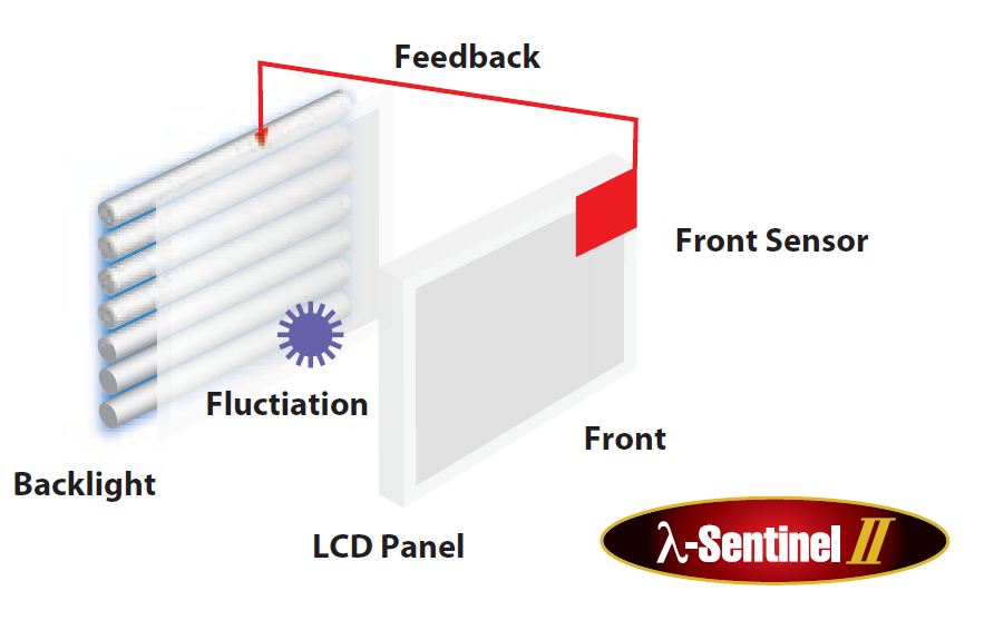 System stabilizacji podświetlenia λ-Sentinel II składa się z czujnika luminacji i układu kontrolującego luminację. Czujnik luminacji znajduje się z przodu monitora, dokładnie przed ekranem. Czujnik ten stale monitoruje panujące oświetlenie i prawidłowo ustala luminację ekranu wysyłając informację o oświetleniu zewnętrznym do układu kontrolnego. Dodatkowo, w monitorach serii i2, czujnik luminancji służy również jako wbudowany kalibrator, umożliwiając szybkie i proste wykonanie kalibracji monitora bez konieczności przykładania do monitora kalibratora zewnętrznego.